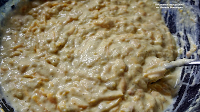 Добавя се горчицата и се бърка до получаване на гладка паста. Прибавят се горещото прясното мляко и сметаната