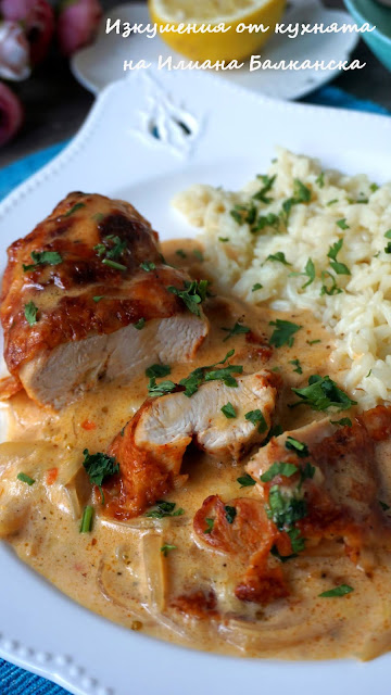 се сервира в подходяща чиния, полят със соса от кашу и поръсен с накълцан